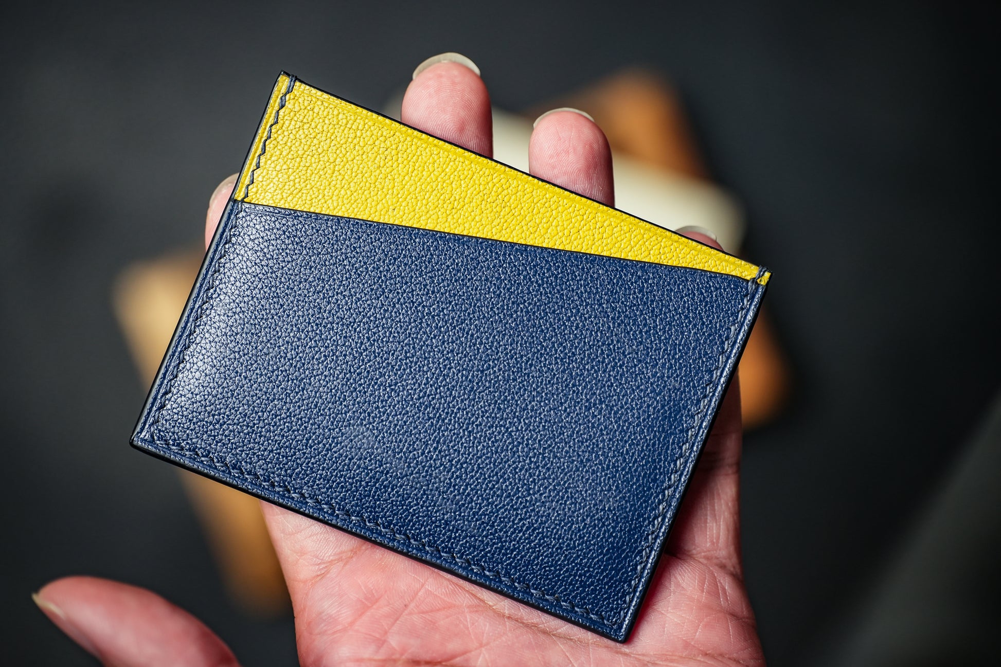 Leather used for each card holder is French Chevre, which has a unique grain, great temper, durability and beautiful consistent colors.