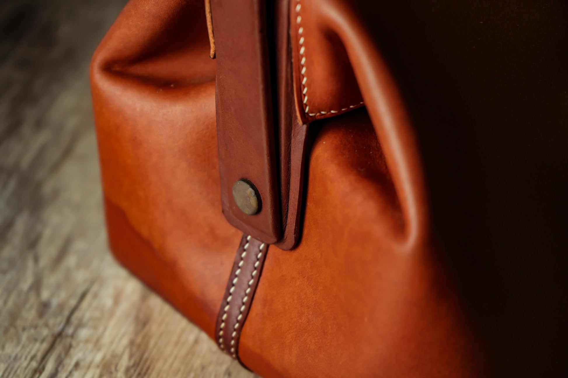 Leather used for each bag is European veg tanned sides, a stiff and rigid material which will patina nicely overtime.