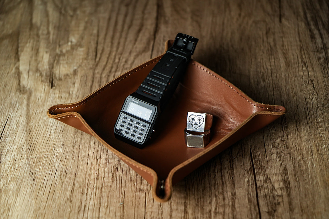 Leather used for tray is Buttero, a stiff and rigid material which will patina nicely overtime.